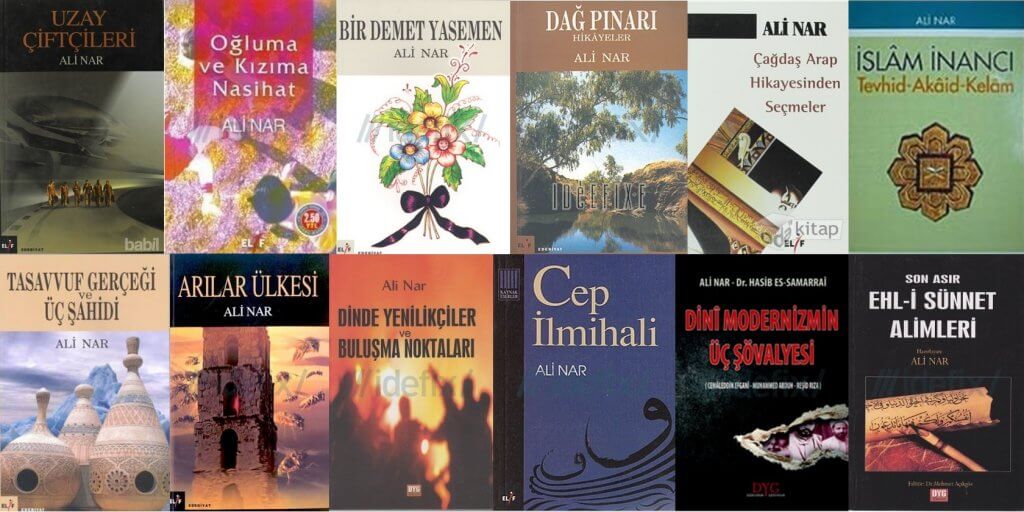 Ali Nar Hoca’nın yazı alanı genişti. Şiir, tiyatro, roman ve piyes gibi edebiyat türlerinin yanı sıra, akaid ve siyer gibi doğrudan dinî disiplinlerle ilgili kitapları da vardı. Bu anlamda telif eserleri olarak Kırk Hadisle Müslüman Kimliği, Hicret, İlm-i Kelam Dersleri ve Cep İlmihali’ni; tercüme eserler olarak da Said Ramazan el-Butî’den Fıkhu’s-Siyre’nin dışında “Akaid Risaleleri” ve Abdülmecid Zindanî’den “İman Yolu”nu sayabiliriz. Tabiî “Dinler Arası Diyalog Fitnesi” kitabını da bu listeye ekleyebiliriz.