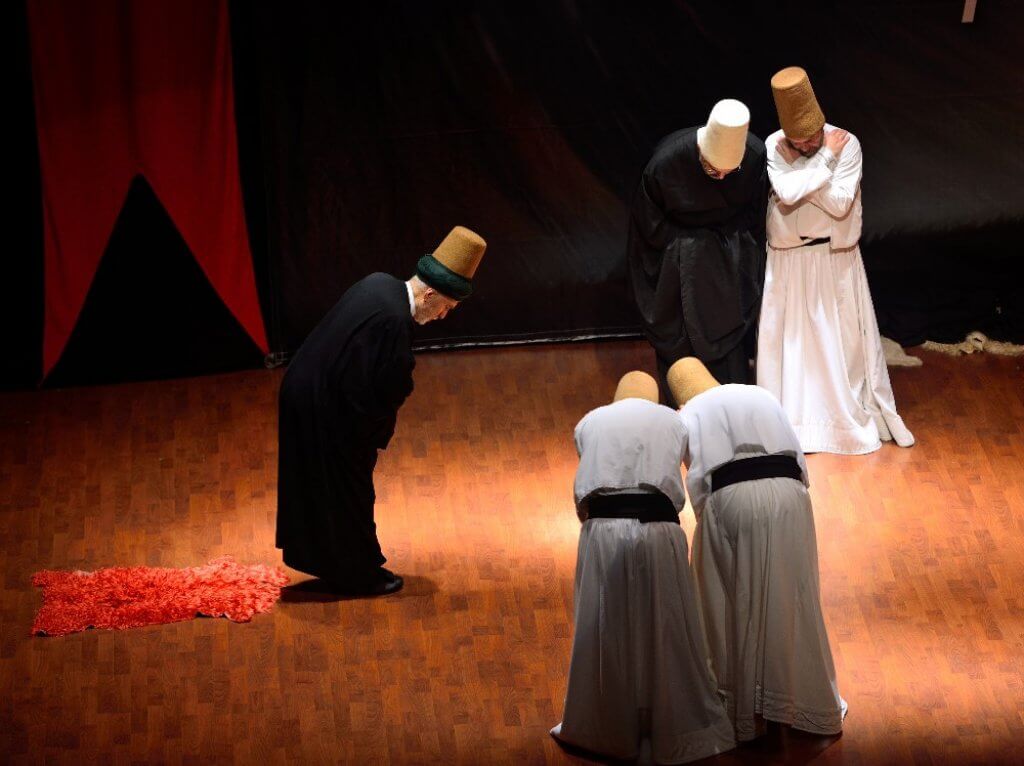 derviş, yana yakıla sema’a kalkar. Mevlâna’nın çekiç sesine bile sema’a