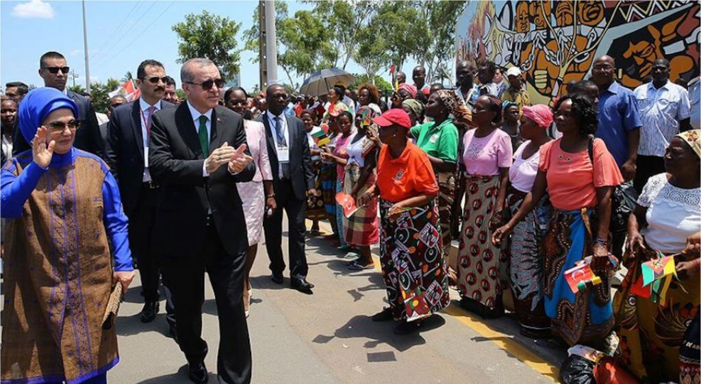Türkiye, Afrika’daki diplomatik ilişkilerini de güçlendirdi. Erdoğan liderliğinde Afrika Birliği’nin yanı sıra çeşitli Afrika ülkeleri ile ikili ilişkilerini geliştirmeye özen göstermeye başladı. Bu anlamda kendisinden önceki yaklaşık 80 yılda bir elin parmağını geçmeyecek resmî Afrika turları, Erdoğan ile artış göstermiştir.